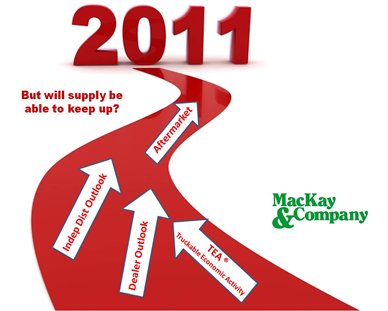 2011 parts sales for both distributors and dealers are predicted to post increases over 2010. Attributed to low 2009 numbers, the 2010 YOY numbers came in strong and from this point forward, the increases may not result in the same strength. Inventory levels are also expected to rebound in 2011 but there remains the reoccurring concern of timely delivery of parts. With demand returning, will the supply be able to keep up with the demand?